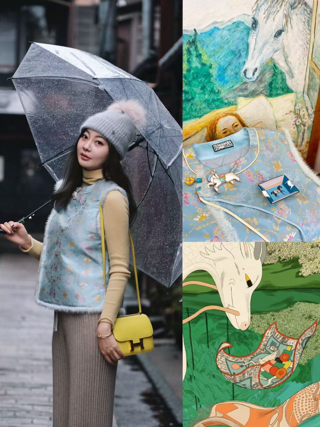钱小萍名家宋锦之龙马精神貂毛偏襟夹羊驼毛马甲背心